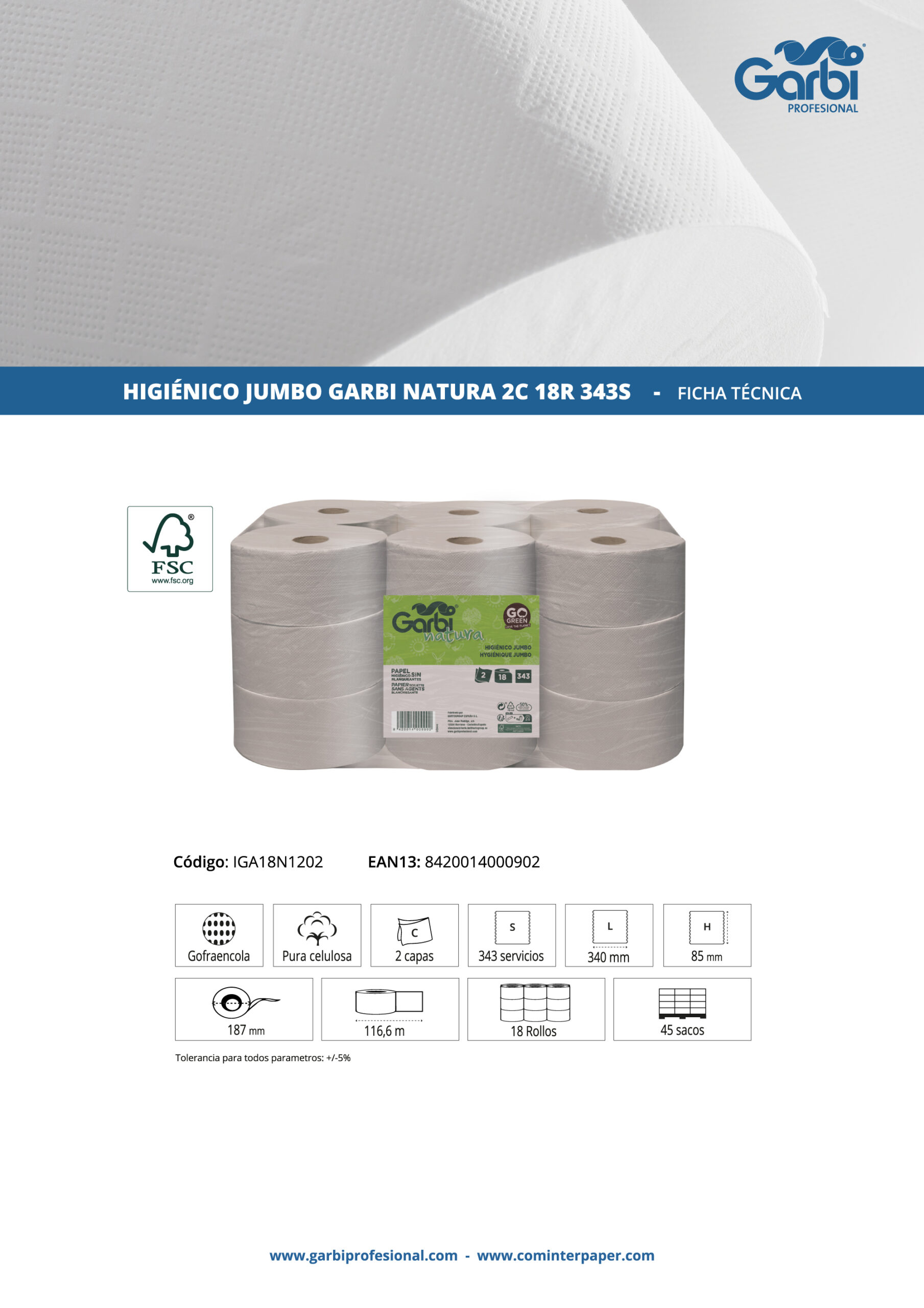 Papel higiénico profesional sin blanqueantes, su gofrado Premium le da una mayor suavidad y resistencia. Larga duración.