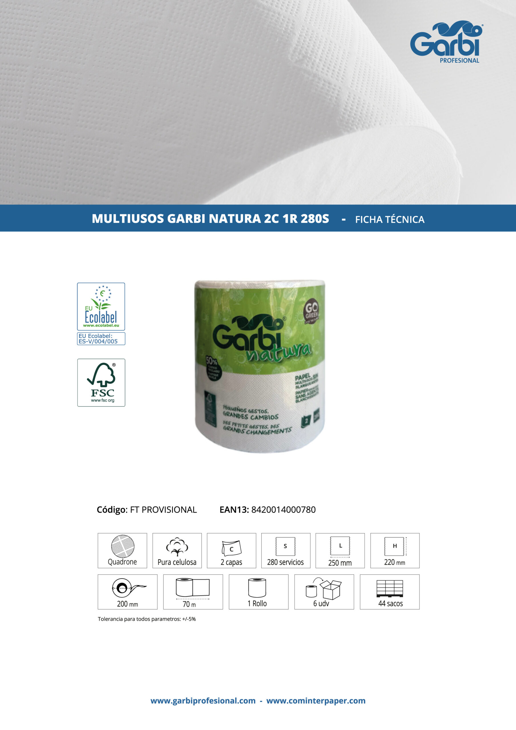 Rollo multiusos, 70m, sin blanqueantes, dotado de gran resistencia y absorción.